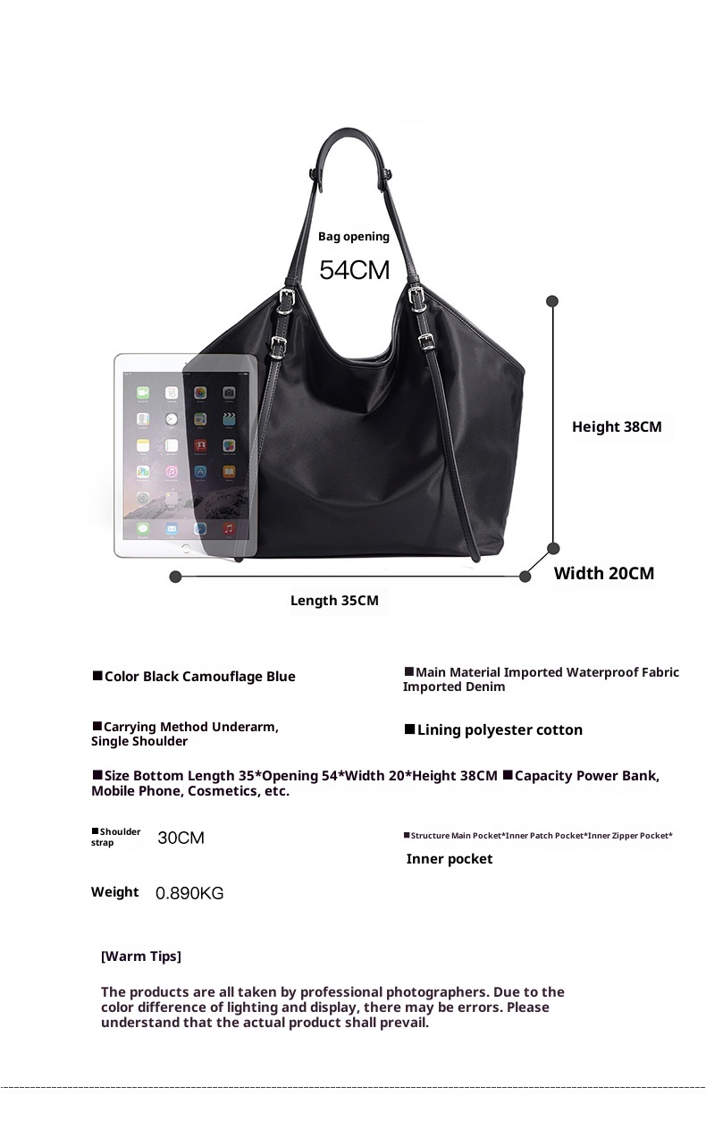Sac casual léger en denim/jean (35x38x20cm) patchwork décontracté. Tissu polyester-coton souple confortable. Forme coquille unique distinctive. Poche patch intérieure organisation. Style casual parfait loisirs et voyages. Ultra-léger facile porter. 2 options : Noir uni ou Camouflage. Sac décontracté polyvalent quotidien.